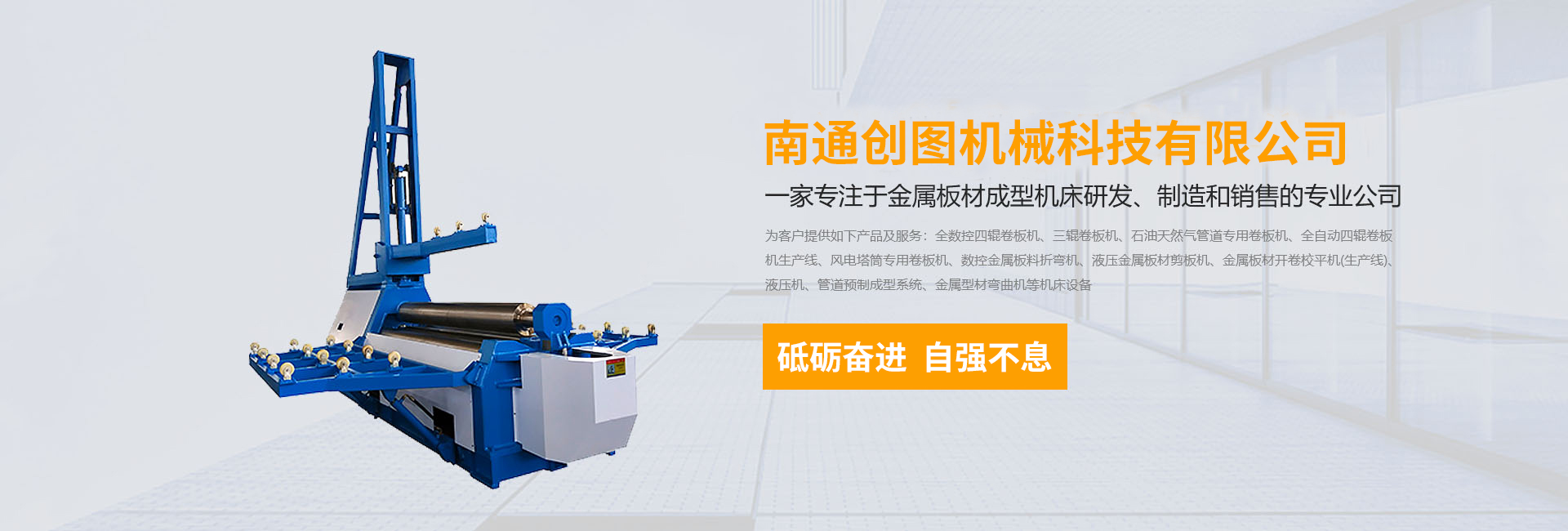 南通創(chuàng)圖機(jī)械科技有限公司坐落在長(zhǎng)江三角洲北翼--江蘇省南通市海安市,是一家專注于金屬板材成型機(jī)床研發(fā)、制造和銷售的專業(yè)公司,公司有著專業(yè)的設(shè)計(jì)、制造和銷售團(tuán)隊(duì)。南通創(chuàng)圖機(jī)械自成立至今,砥礪奮進(jìn),自強(qiáng)不息,努力為客戶提供如下產(chǎn)品及服務(wù):